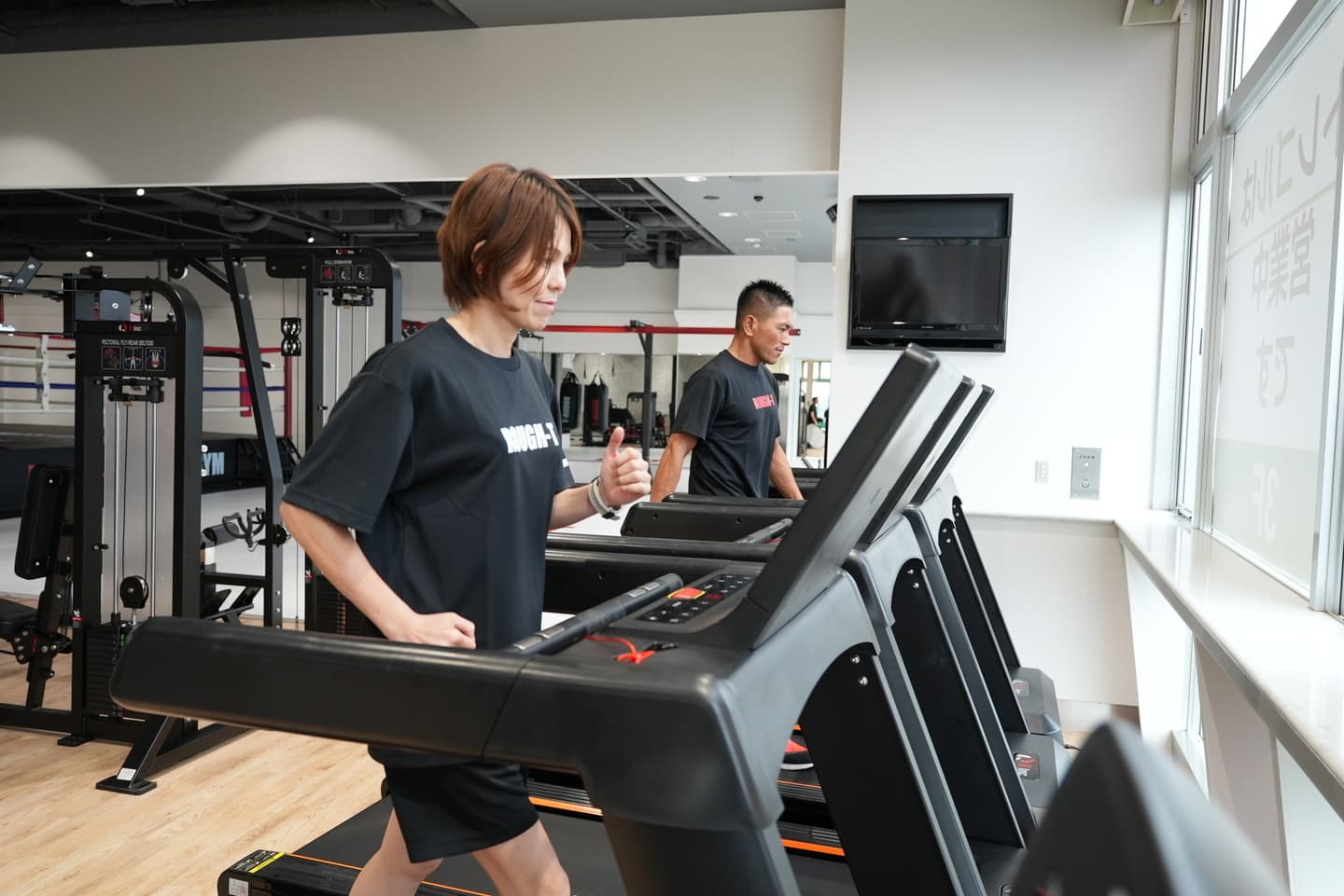 A クラス優先でリング・マットエリア(サンドバック)での自主トレはできません。フィットネスマシンエリアは使用できます。